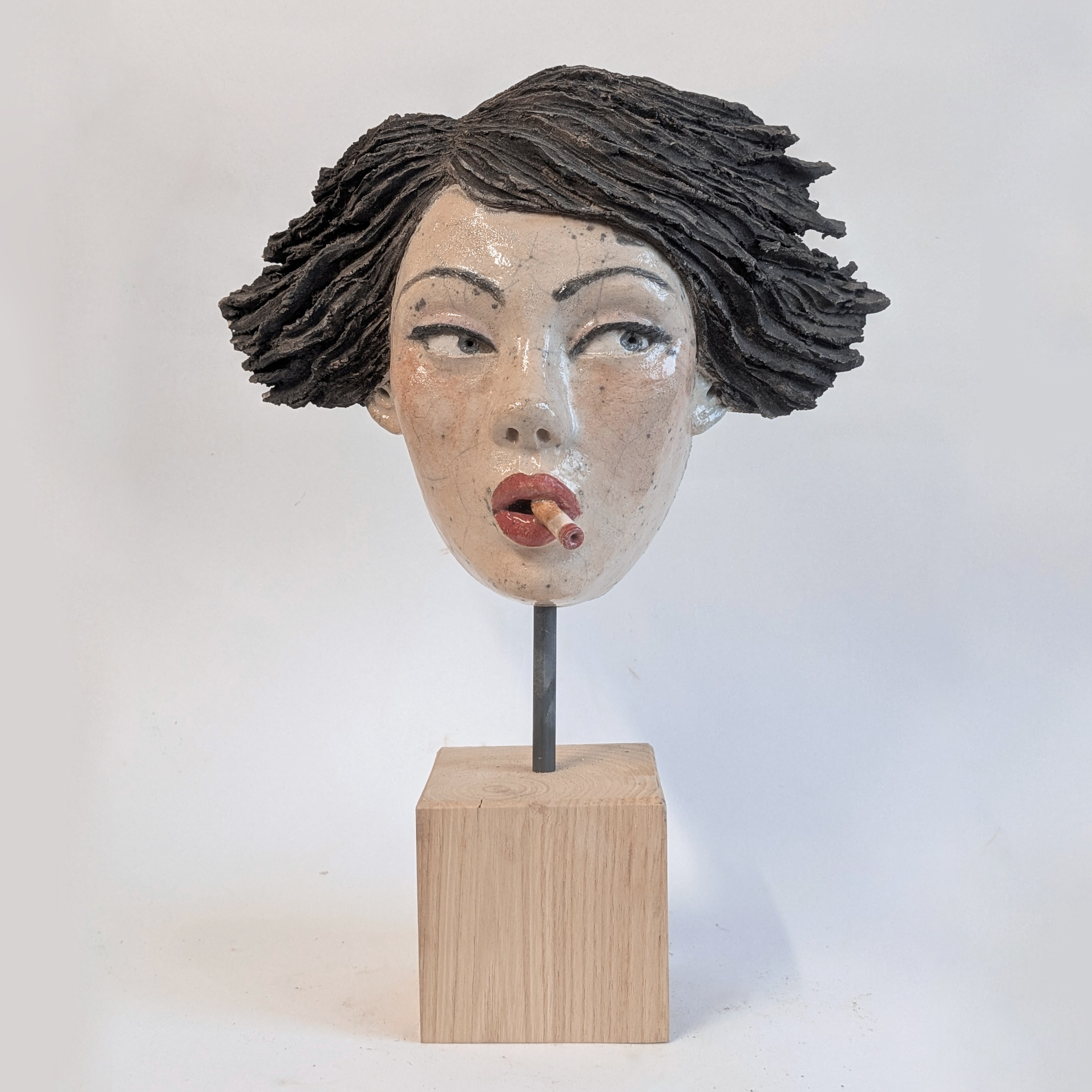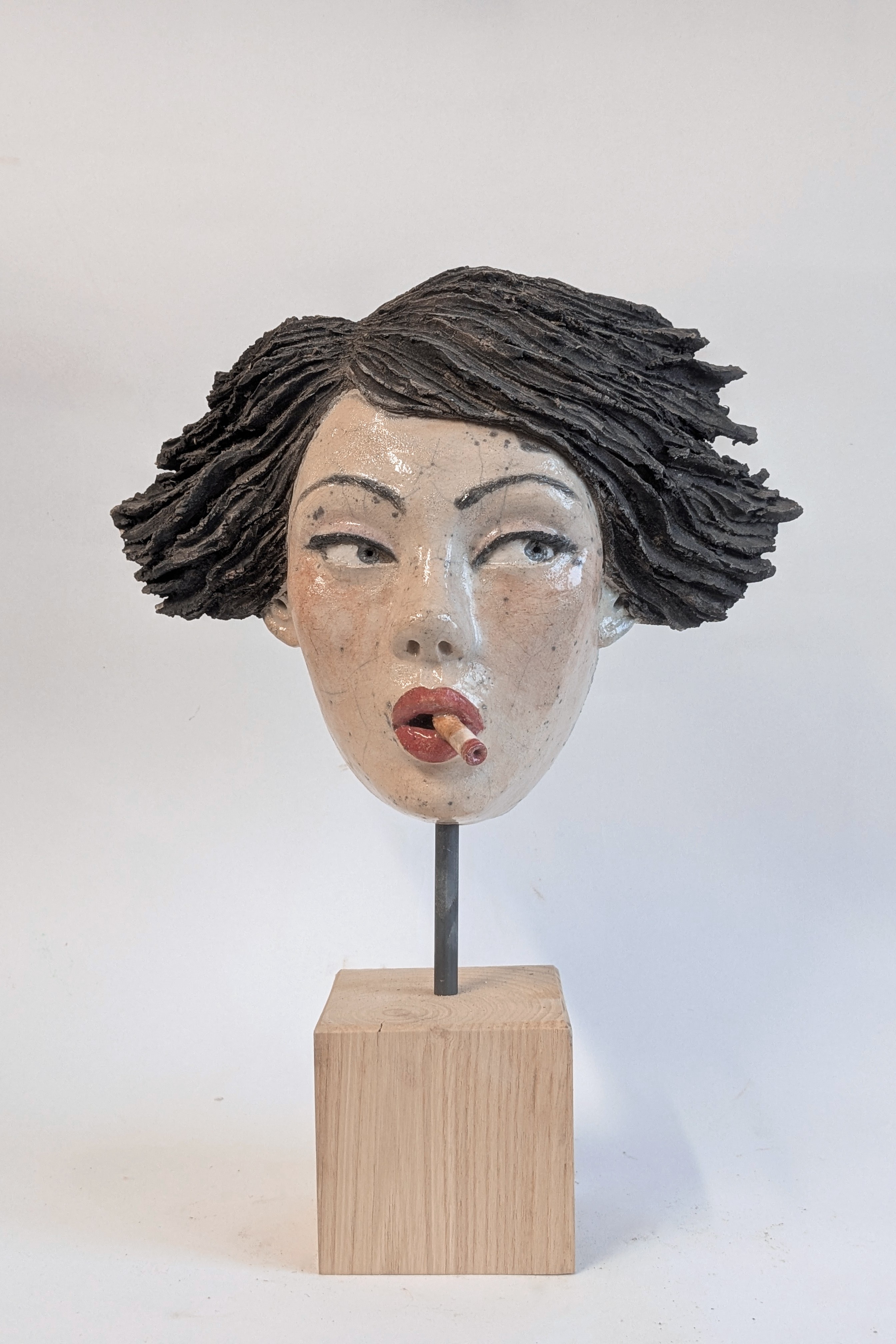 Masque Céramique raku / socle bois